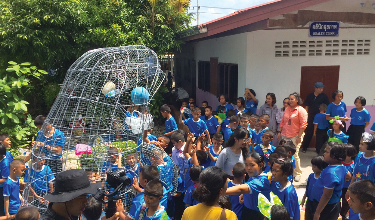 กิจกรรมสร้างสรรค์งานศิลปะกับโรงเรียนบ้านหนองแฟบ เป็นกิจกรรมที่เกิดขึ้นของการร่วมมือระหว่างกลุ่ม บริษัท พีทีที โกลบอล เคมิคอล จํากัด (มหาชน) กับโรงเรียนบ้านหนองแฟบและคณะอาจารย์และนักศึกษามหาวิทยาลัยศิลปากร โดยเป็นการสร้างสรรค์ศิลปะในเชิง ความคิดกับผู้ร่วมกิจกรรม ปลูกฝังจิตสำนึกในเรื่องของการอนุรักษ์ทรัพยากรทางธรรมชาติ การเล็งเห็นถึงความสำคัญของการรักษา ธรรมชาติ เป็นการถ่ายทอดความรู้ในเชิงปฏิบัติที่ให้นักเรียนและครูของโรงเรียนบ้านหนองแฟบเข้ามามีส่วนร่วม ผ่านการส่งเสริมให้มีความคิด บวกต่อการรักษาทรัพยากรในด้านต่าง ๆ โดยใช้วัสดุประเภทลวดเหล็ก และขวดพลาสติก pet นำมาเชื่อมโลหะ มีขนาด 1.40 x 2.00 x 2.40 เมตร ภายใต้แนวคิดการใช้โลมาหัวบาตรเป็นต้นแบบ